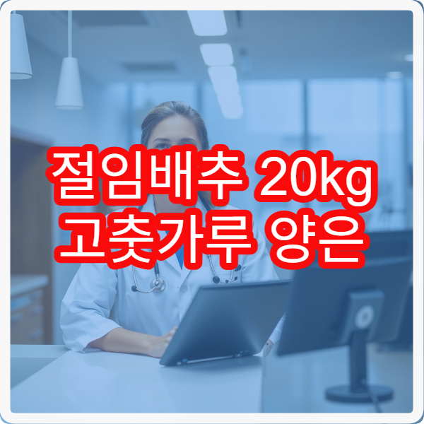 김장을 준비할 때 가장 중요한 주재료 중 하나인 절임배추 20kg에 맞는 고춧가루 양을 정확히 맞추는 것이 맛있는 김치를 만드는 핵심입니다. 적절한 비율 덕분에 김치 맛이 풍부하고 조화로우며 실패 없는 김장을 완성할 수 있습니다.